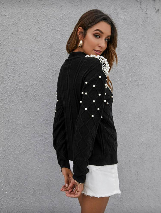 Mulvari Solid Pearl Rib-Knit Sweater,Long Sleeve Tops - Medium