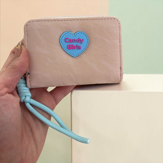 Candy Girls Accordion Card Holder Wallet with Zipper & Wrist Strap
