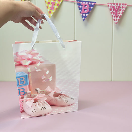 Baby Shower Gift Bag – Elegant Pink Design with Satin Handles