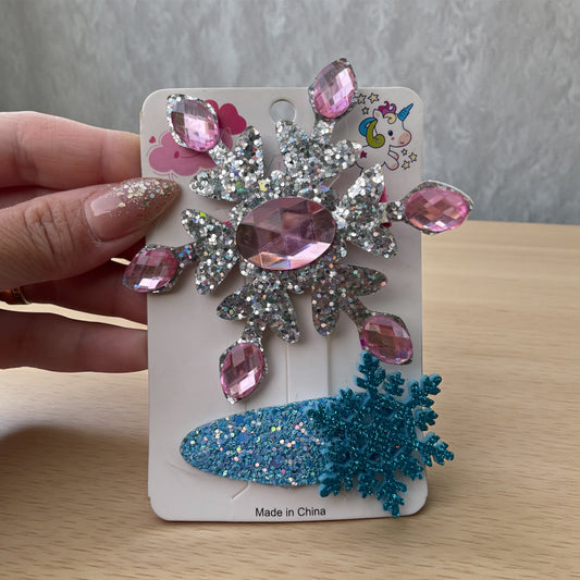 2Pcs Set Children's Hair Clips, Elsa Princess Hair Accessories, Frozen Snowflake Hair Clips, Girl Side Clips, Little Girl Clips