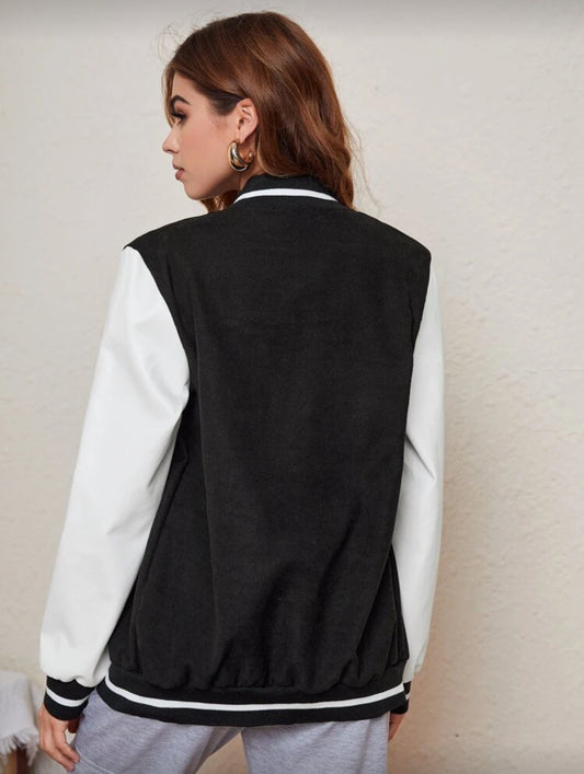 SHEIN Letter Patched Contrast Sleeve Varsity Jacket - M