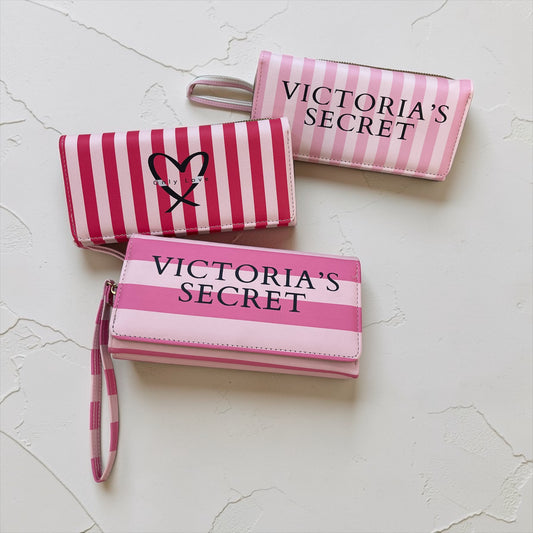 Victoria’s Secret Style Striped Long Wallet with Zipper & Wrist Strap