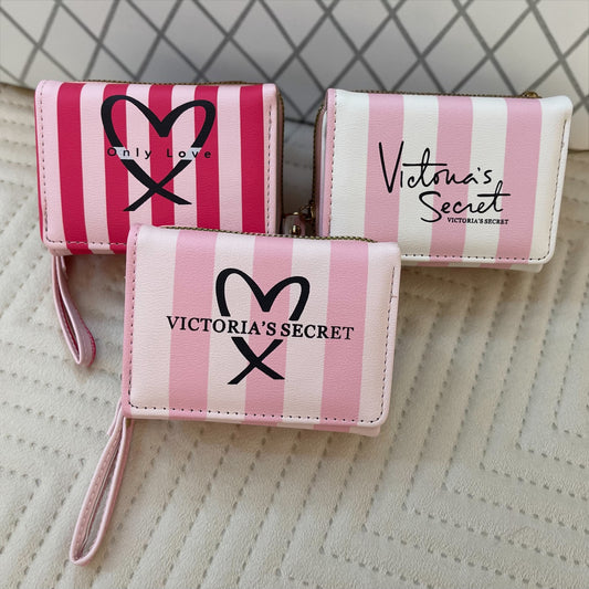 Victoria’s Secret Style Mini Striped Wallet with Zipper & Wrist Strap