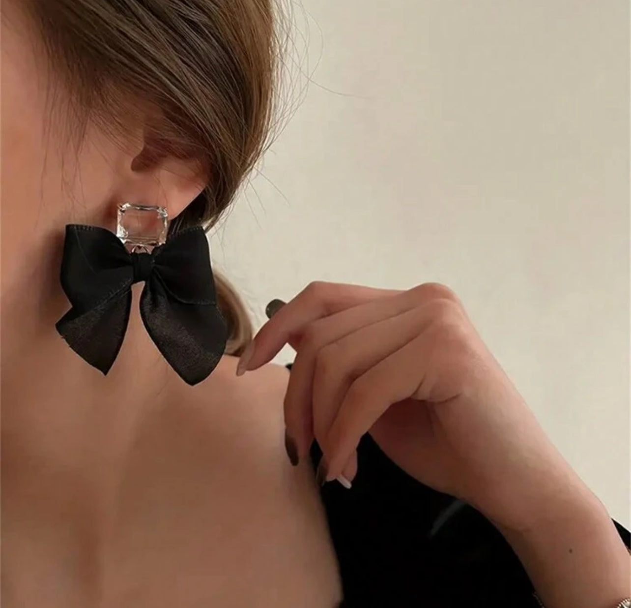 1 Pair 2pcs Black Bow Decor Elegant Versatile Fashion Bridal Earrings, Suitable For Wedding Or Daily Wear Valentine's Day Accessories