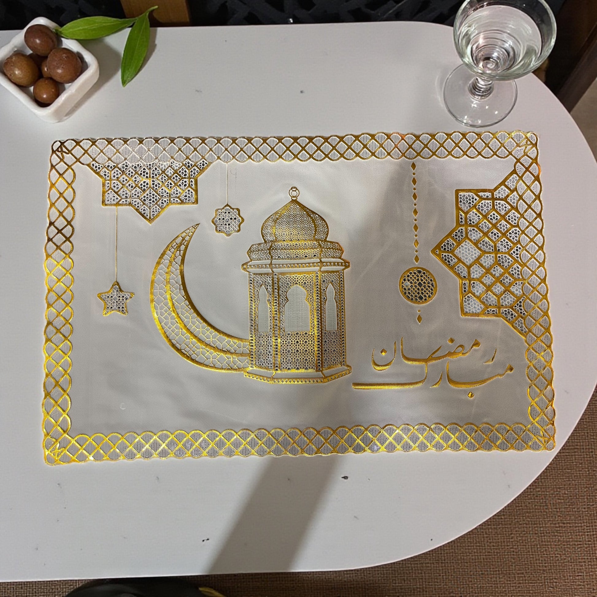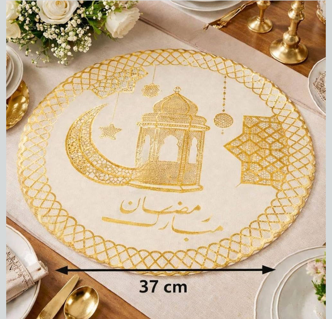 1PC Ramadan Mubarak Placemat β Gold Embroidered Round & Rectangle Table Mat
