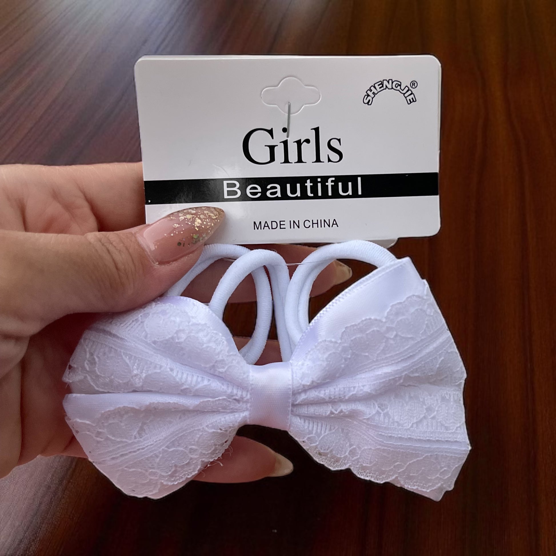 3pcs/set White Color Cute Back to School Lace Bow Hair Ties for Girls Fashionable Stretch Versatile Kids Ponytail Holders with Floral Lace Trim LQ