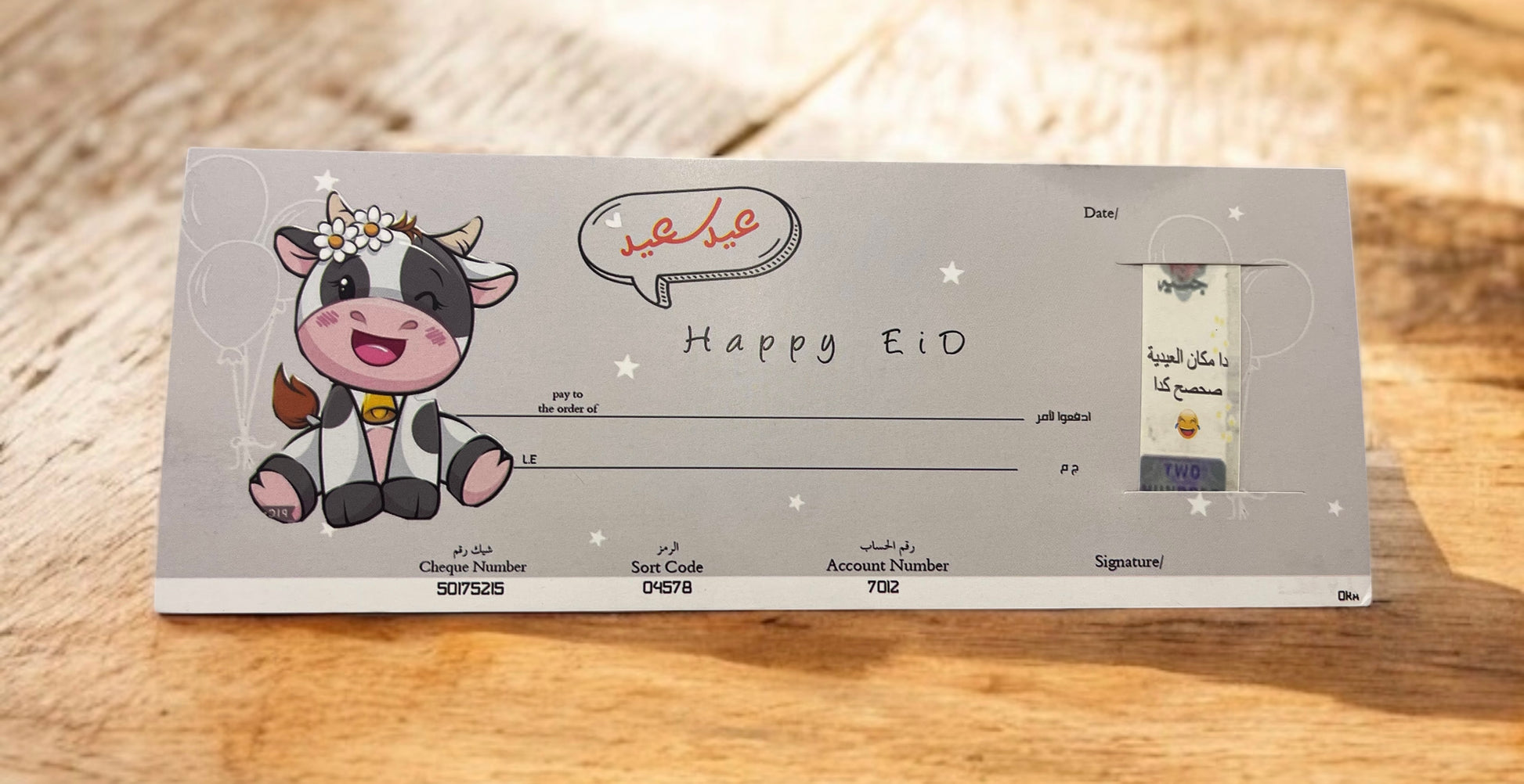 كارت معايده كارتون لتقديم العدية بصورة شيك