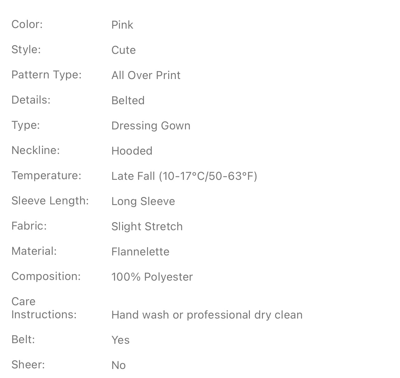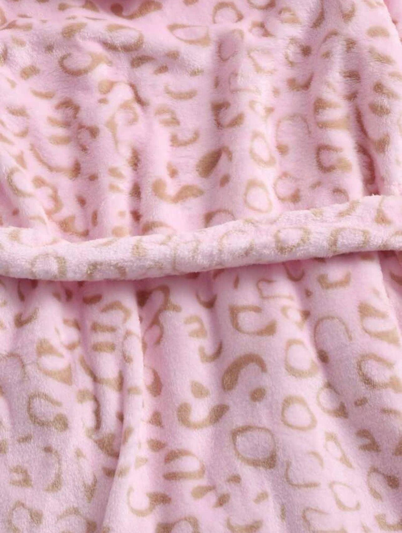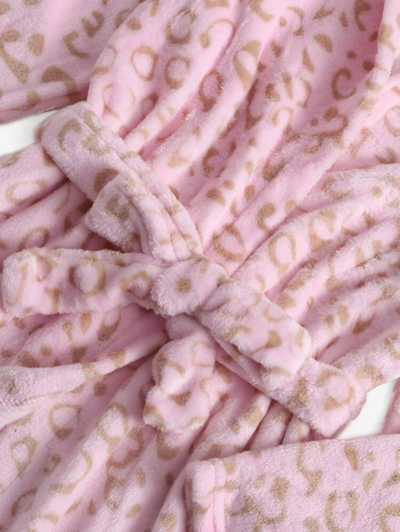 SHEIN Girls Allover Pattern Belted Hooded Robe - 5 Years