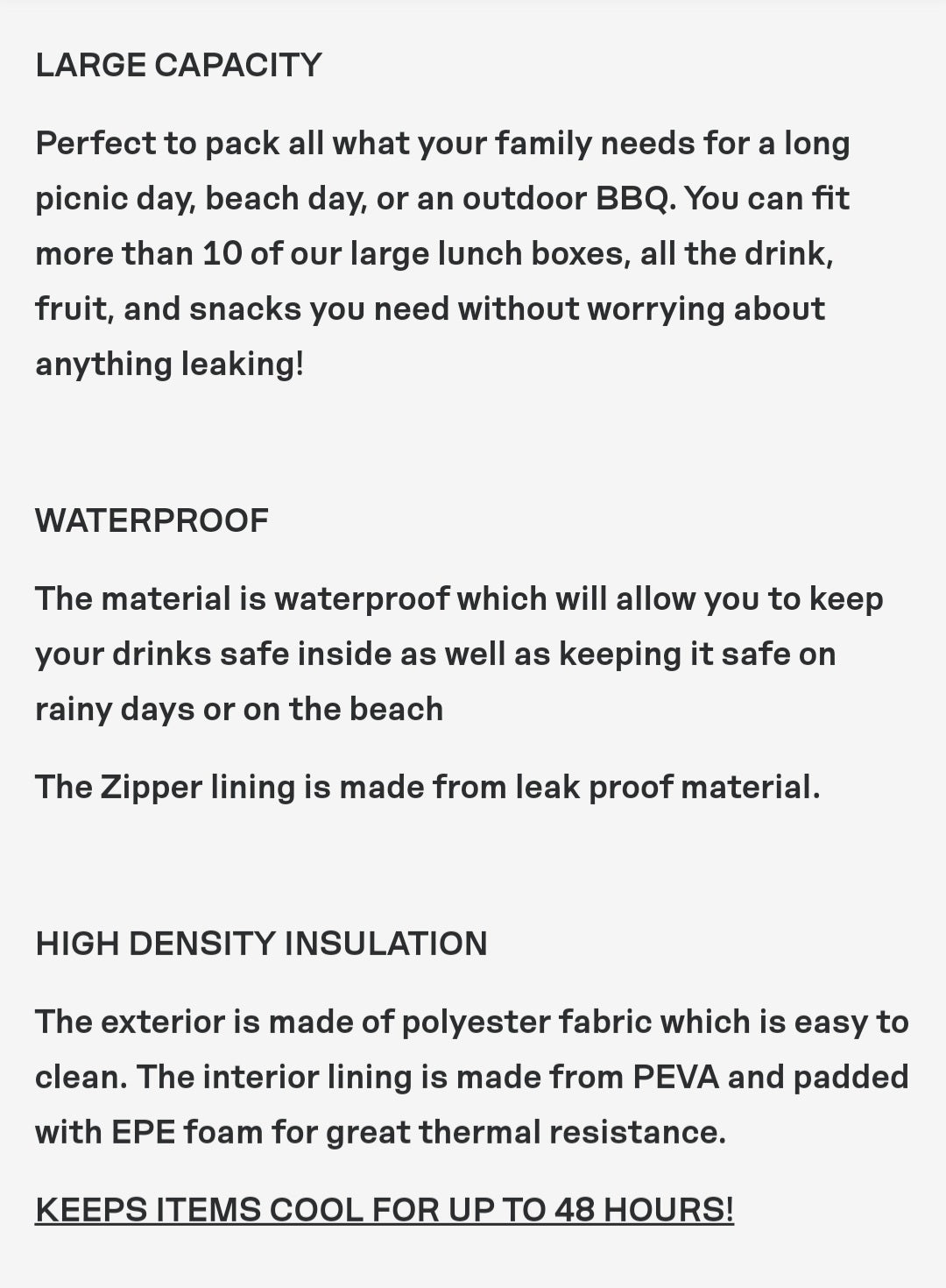 KEEPS ITEMS COOL FOR UP TO 48 HOURS!