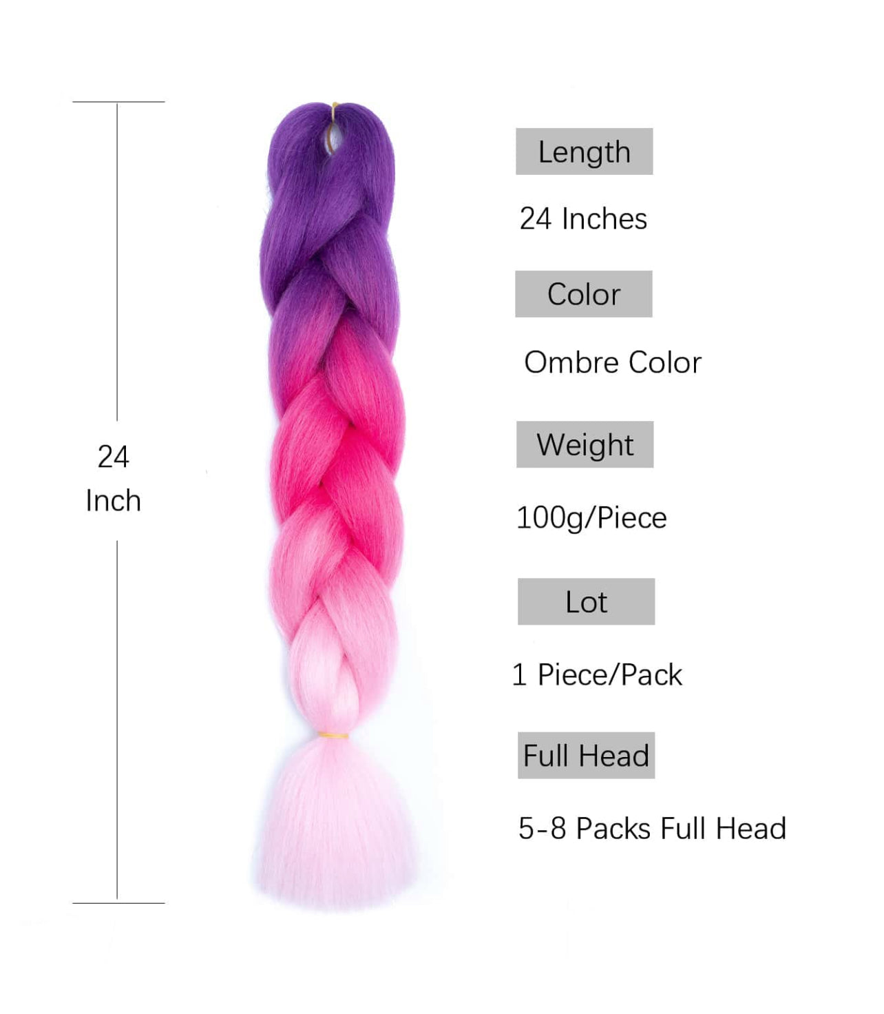 SHEIN Braiding Hair Extensions For Women 100g/Pack 24Inch High Temperature Ombre Jumbo Synthetic Braiding Hair For Twist Crochet Braids