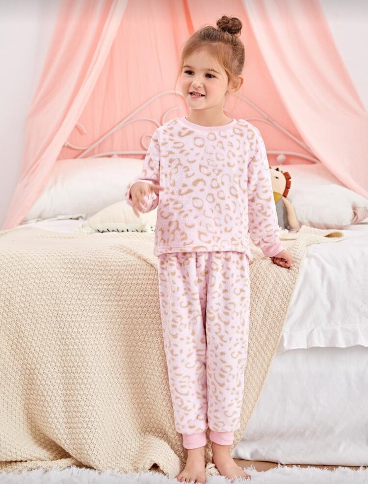 SHEIN Girls Allover Print Flannel Lounge Set - 5Years