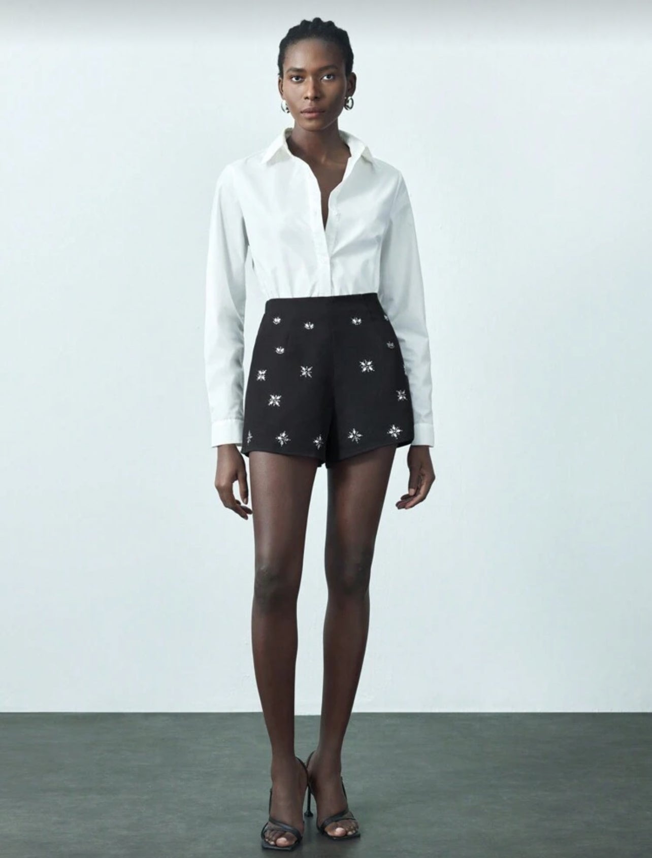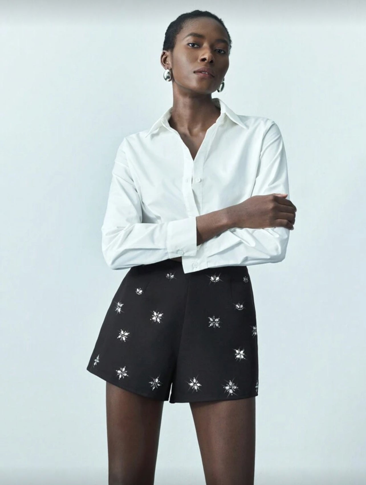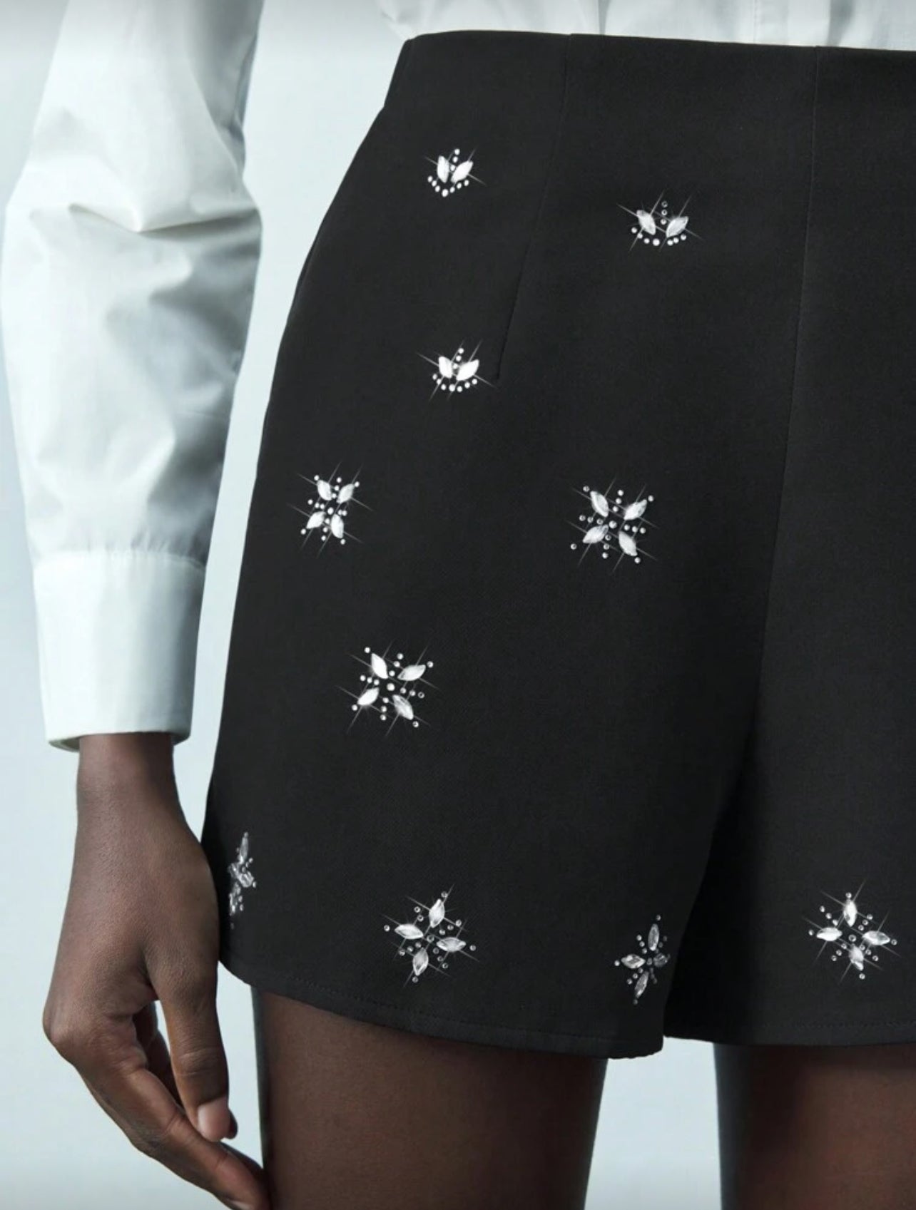 Shein Maija Women's Black Rhinestone Design Modern Urban Versatile High Waist A-Line Shorts - XL