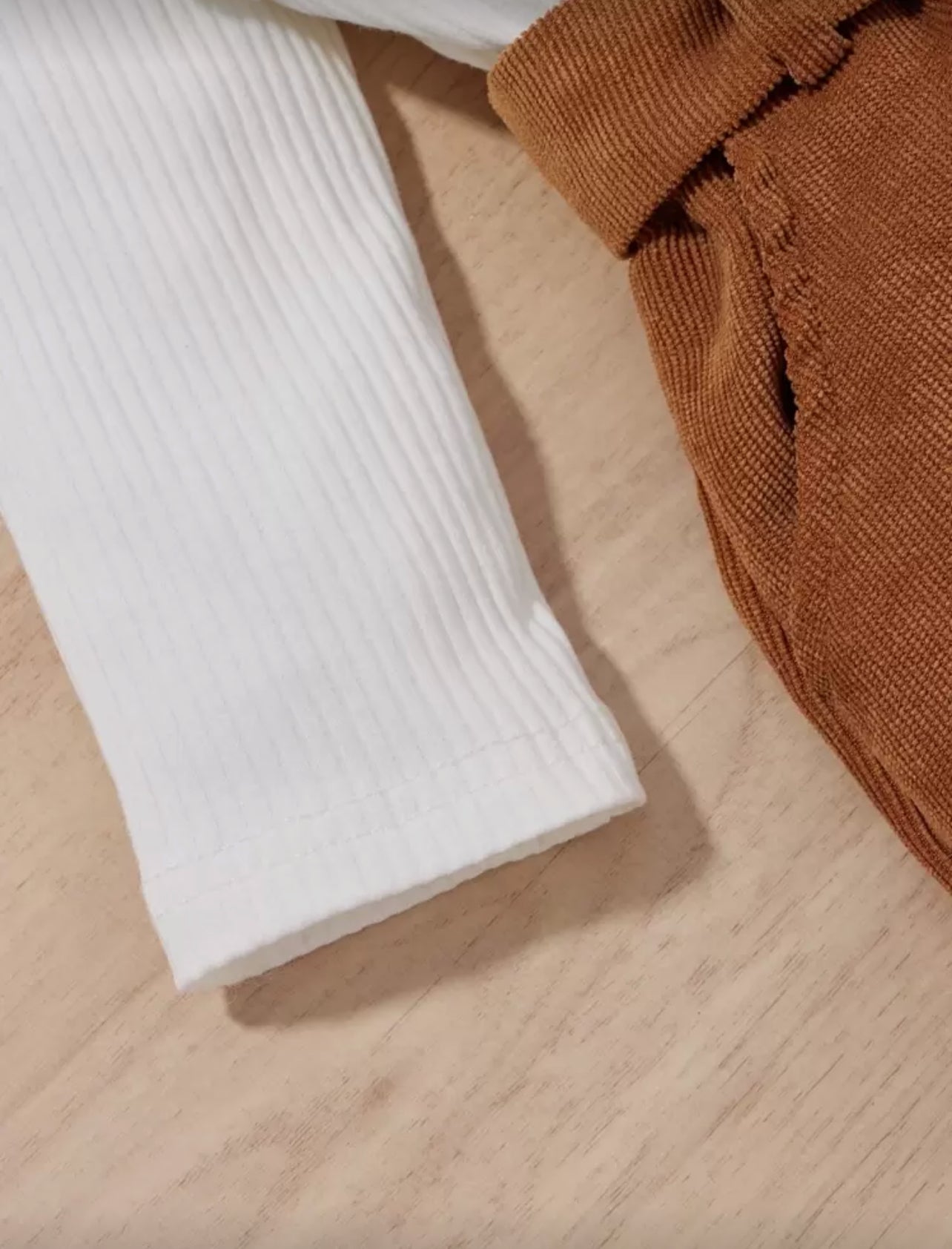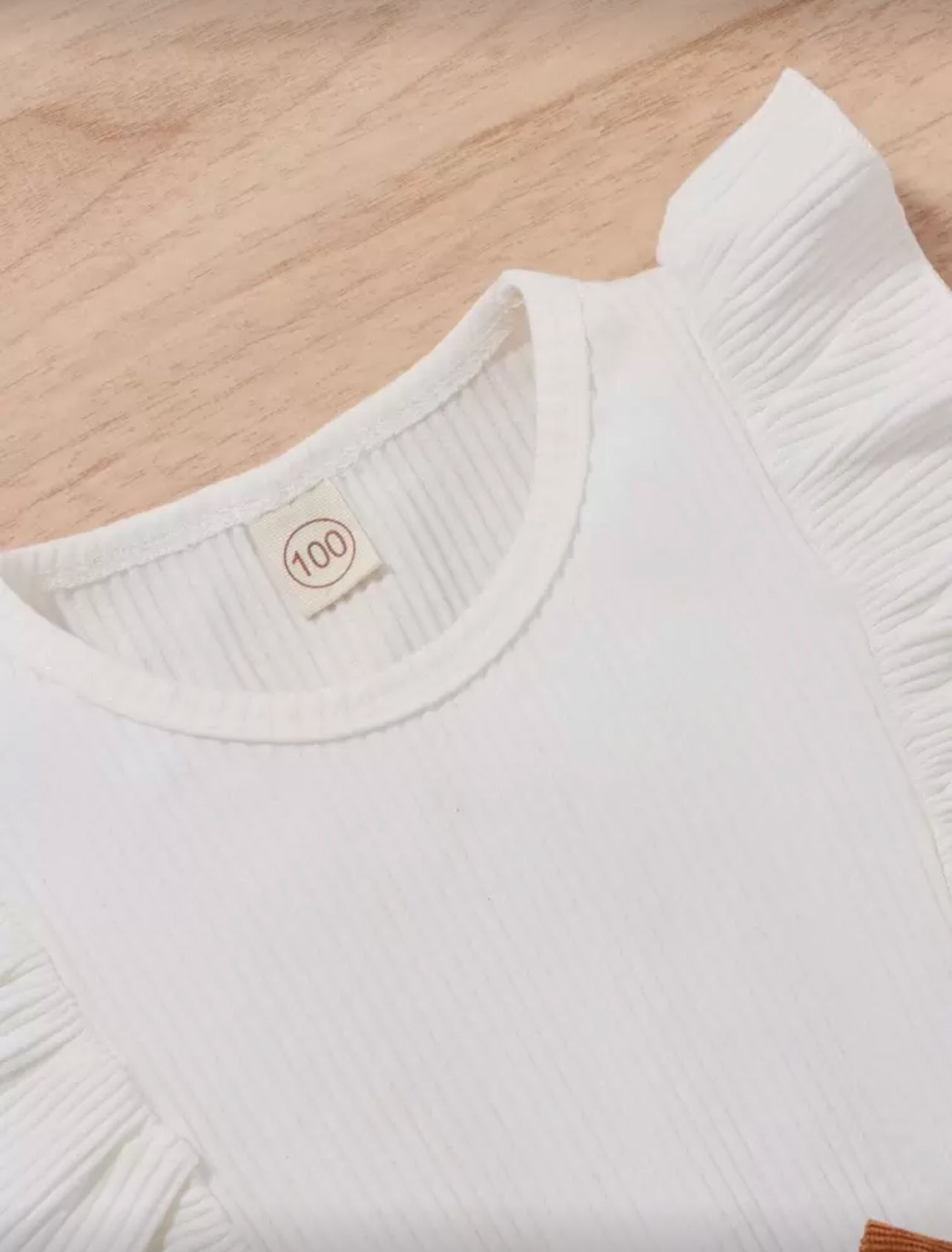 SHEIN Young Girl Ribbed Knit Ruffle Trim Top & Belted Skirt - 3Y