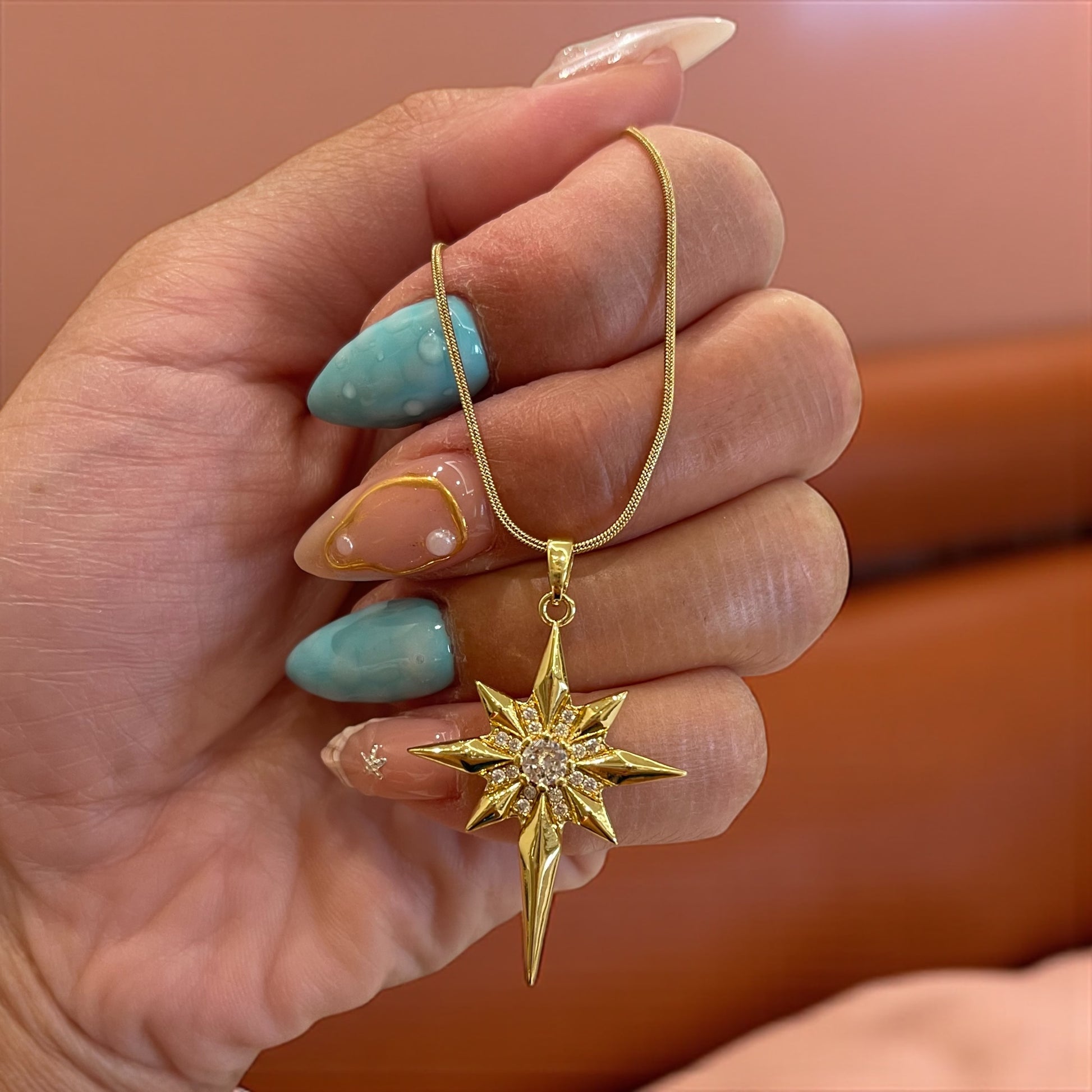 Simple Shiny Zircon Star Pendant Necklace for Women Hip Hop Cool Collar Accessories Stainless Steel Chain Jewelry Gifts
