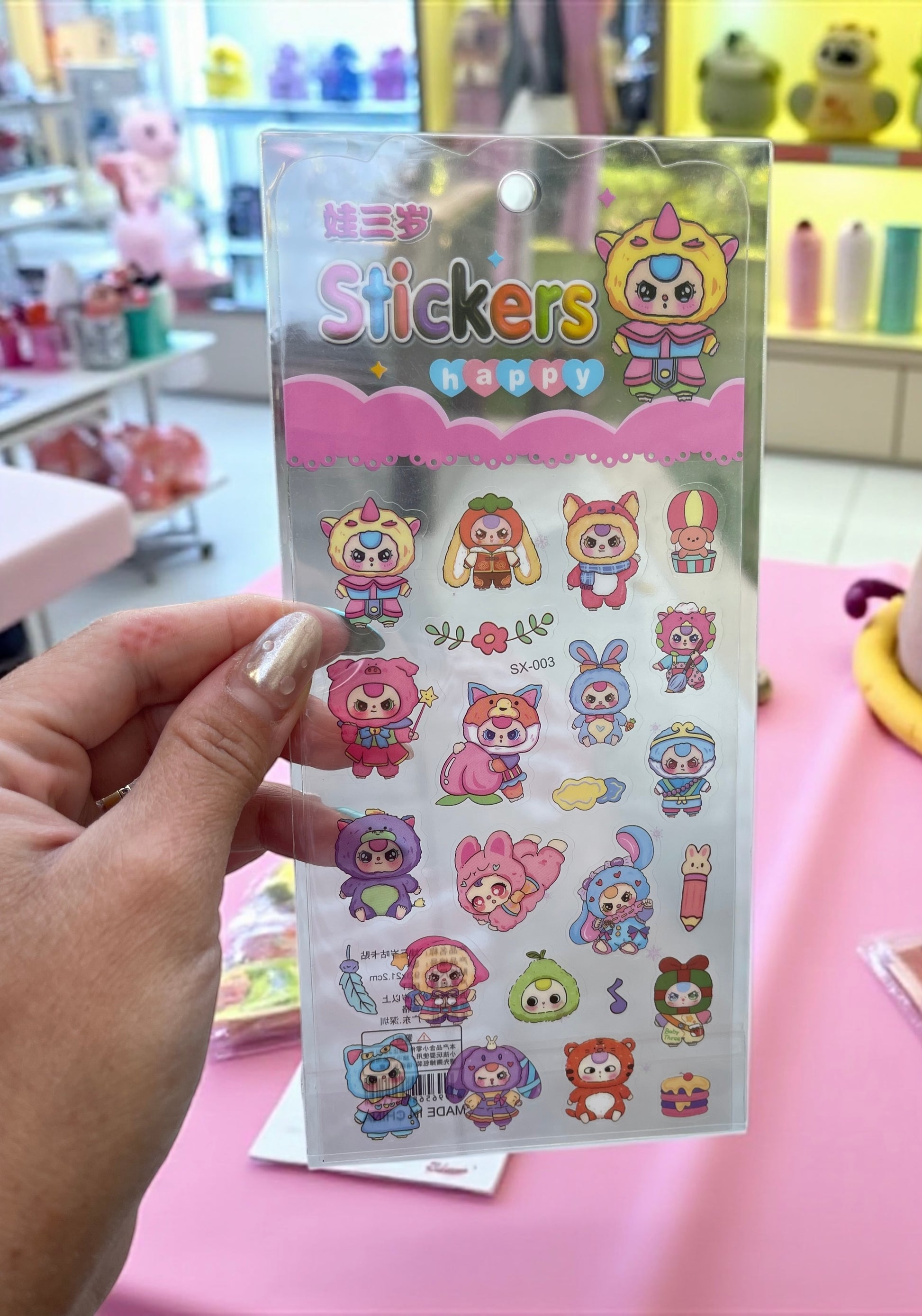 1Sheet Transparent Stickers Baby Three Stitch Saniro Adorable Design 10x15 Cm
