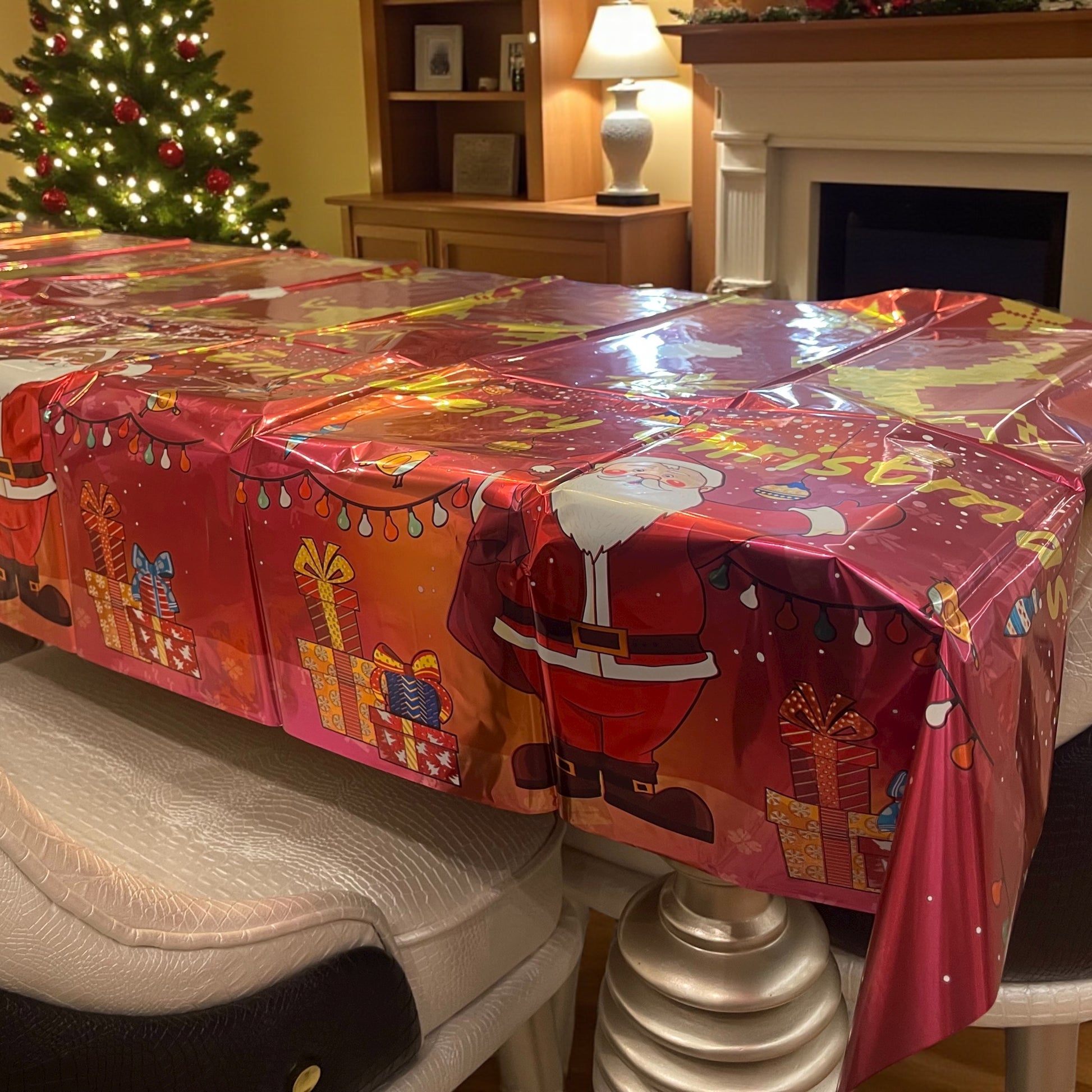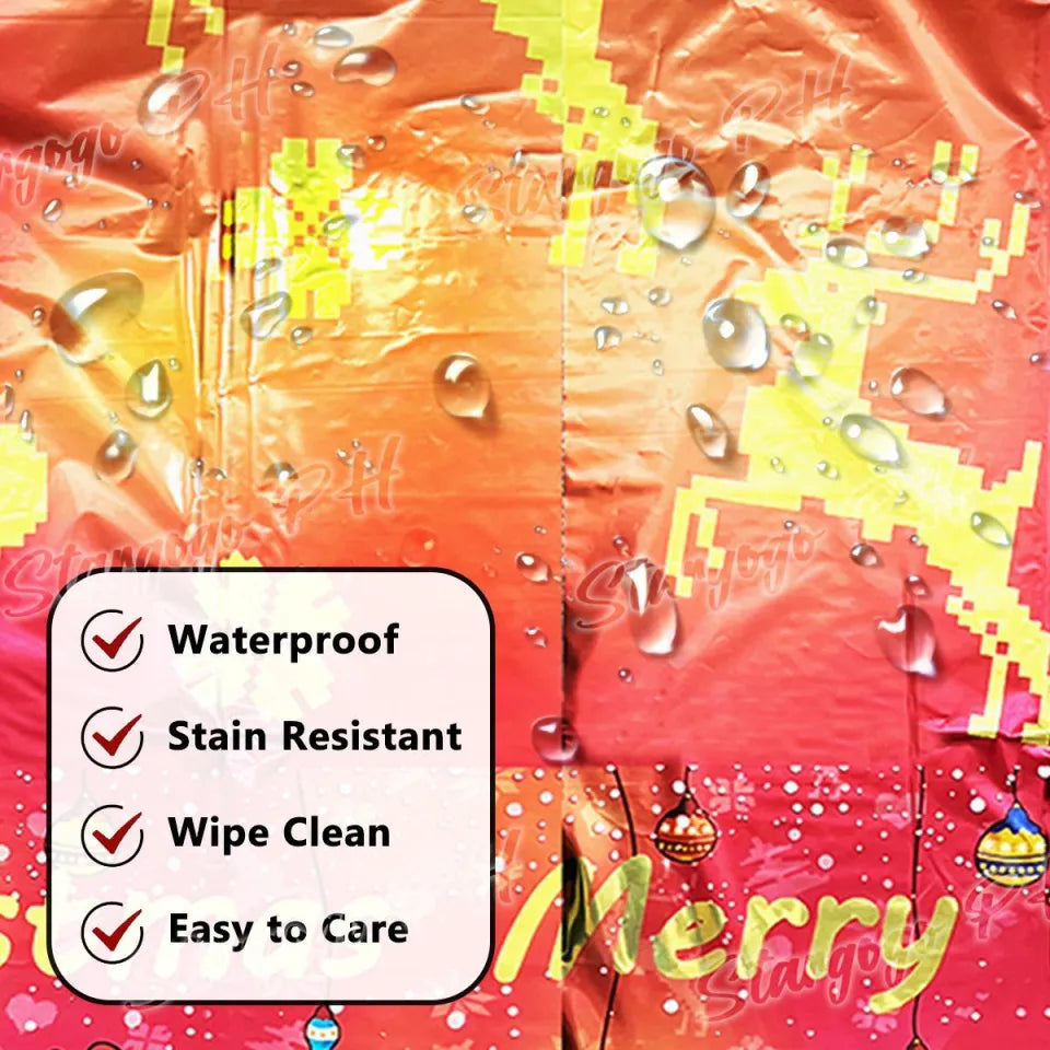 High Quality: The Christmas Foil table cover is made of foil material, printed with vibrant patterns, reliable and not easy to tear, lightweight and portable, waterproof and stain-resistant.
