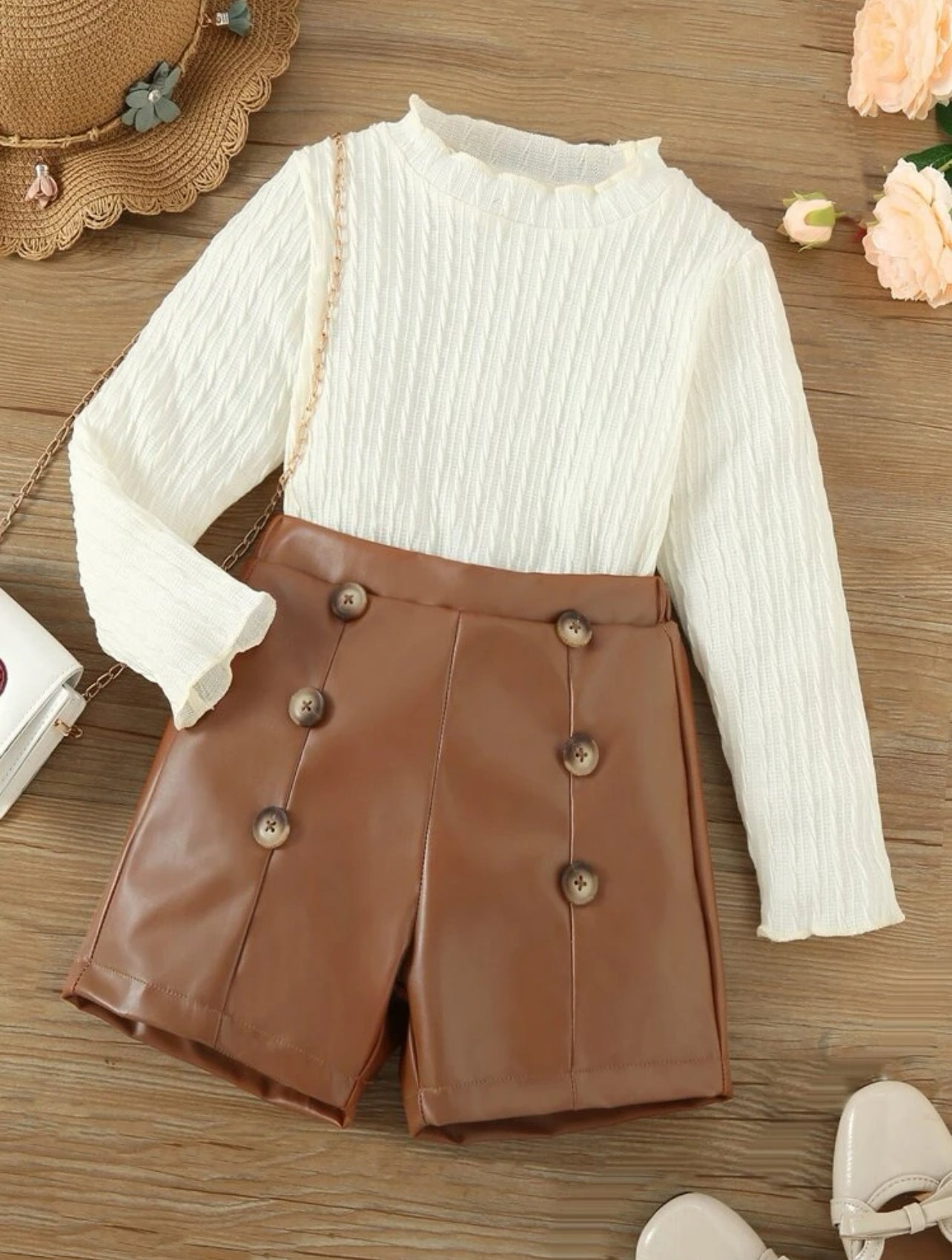 SHEIN Toddler Girls Lettuce Trim Textured Top & Shorts - 6 Years